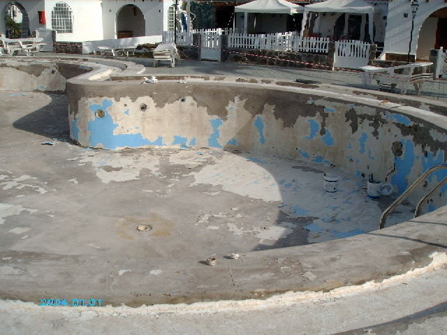 Impermeabilización del vaso de piscina e impermeabilización de aljibes con productos homologados.